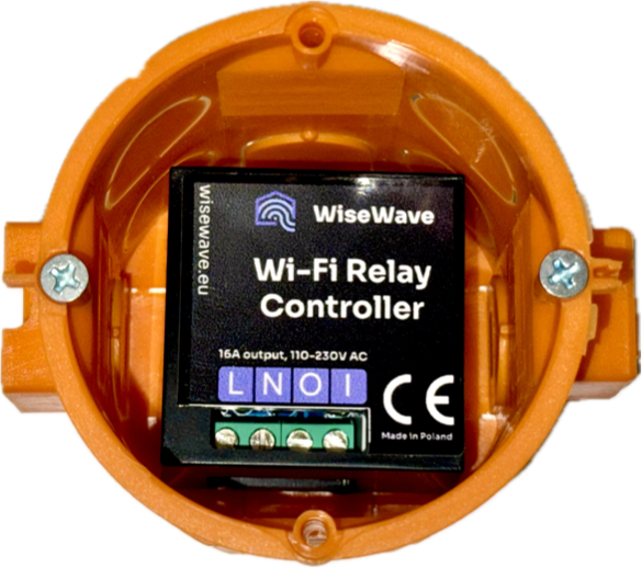 Moduł przekaźnika idealnie mieści się w puszce podtynkowej